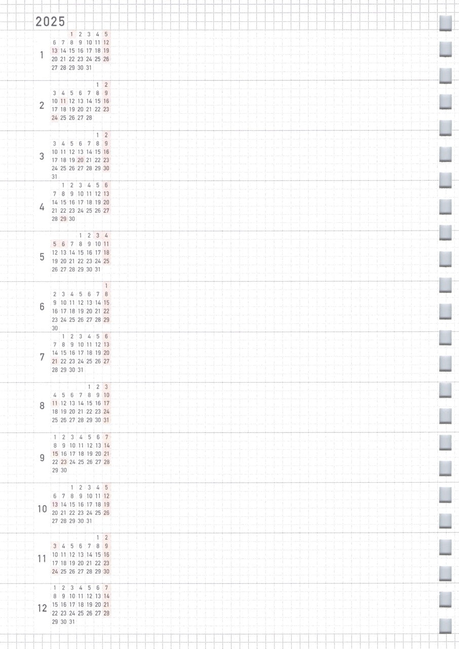 Contents: Annual schedule 2024 + 2025 Monthly schedule January 2024 - December 2024 Standard: A5 / 24 holes Material: Paper