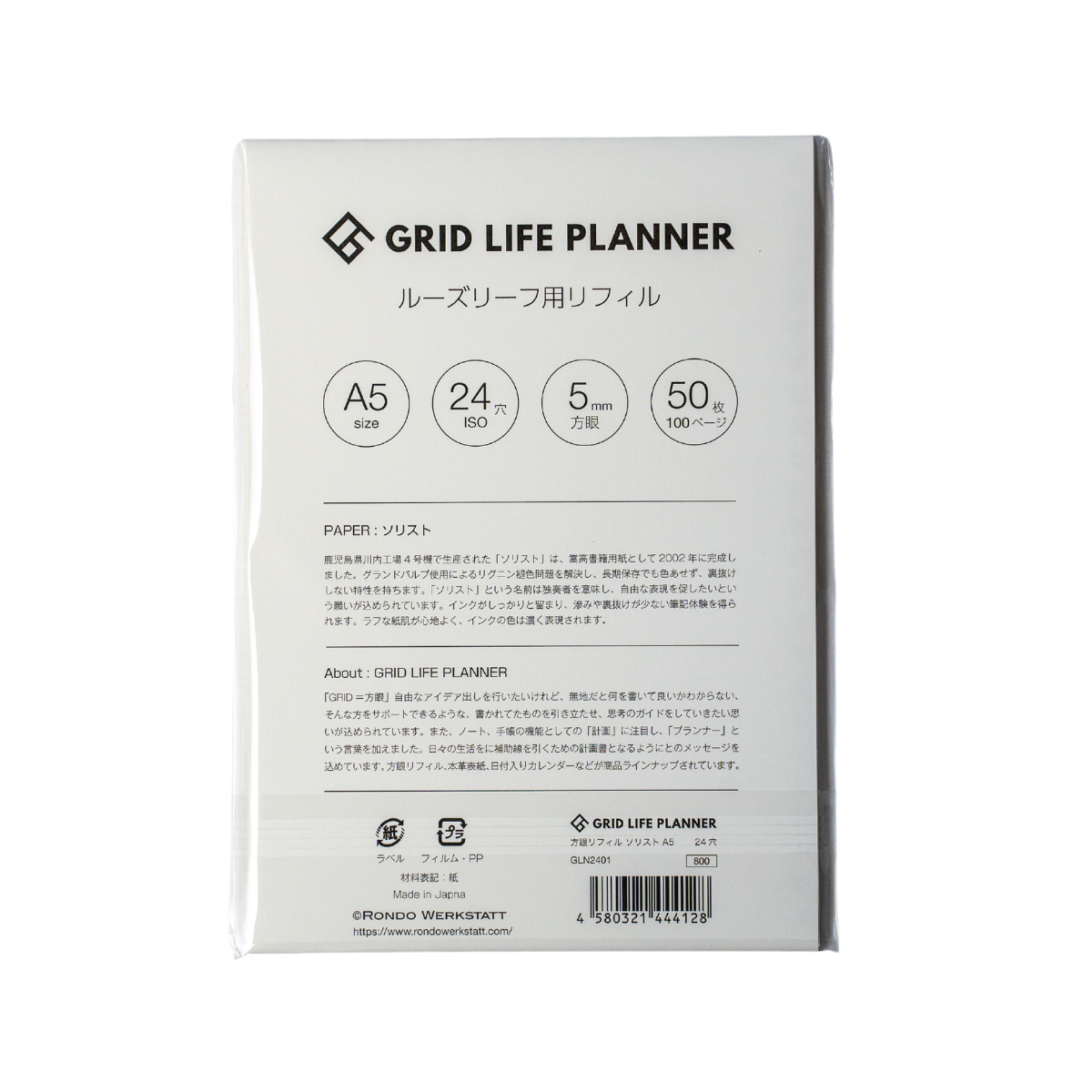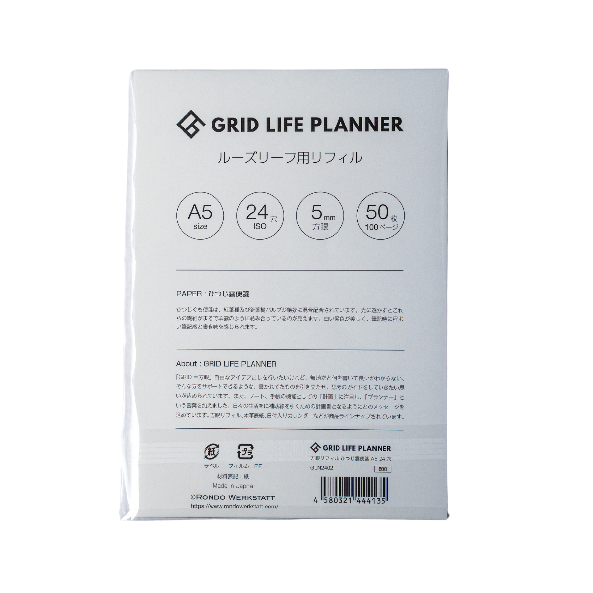 We believe that handwriting is a very important element when it comes to generating ideas. In order to allow users of the GRID LIFE PLANNER to generate ideas more comfortably and freely, we have created two types of grid notebook pages selected by Yamamoto Paper, a company with a proven track record in paper stationery.