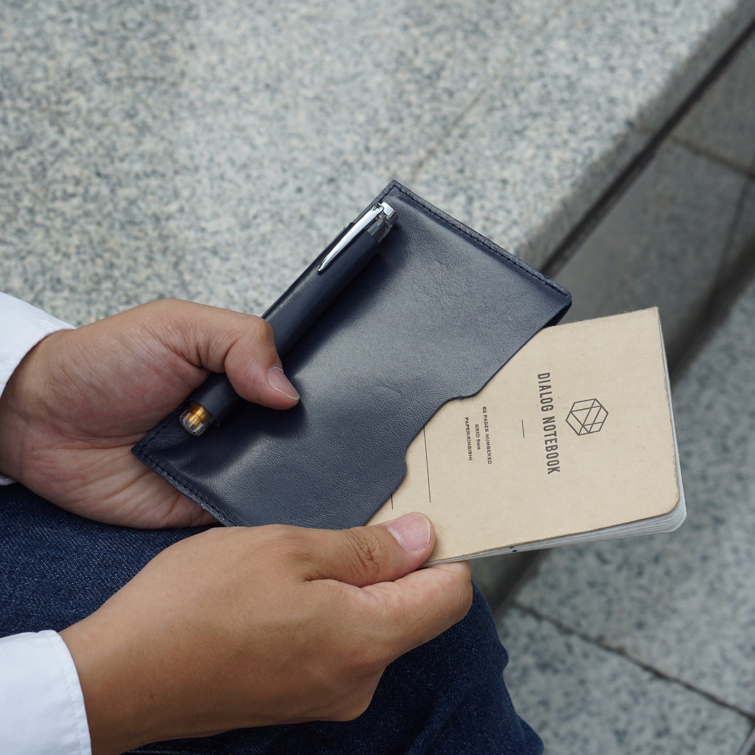ダイアログノートと共同開発した、手帳とノートを2冊同時に持ち歩けるレザーカバーです。