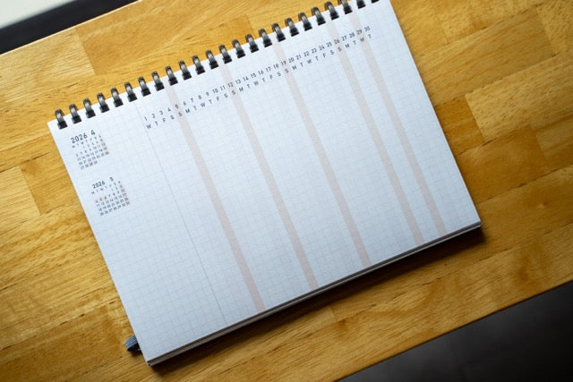 左側にグリッド式のスケジュール、右側に自由なメモスペースを配置。予定を確認しながらアイデアを書き留めたり、タスクを管理したりできます。