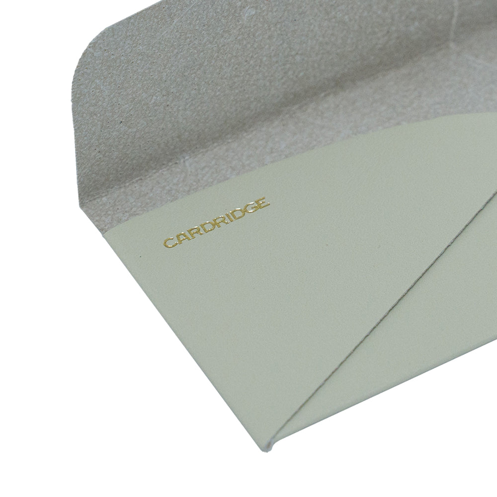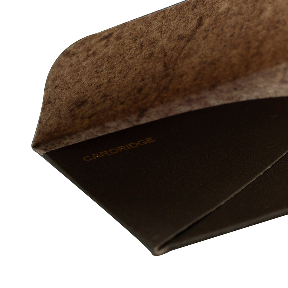 フラットな形状の「MUZOSA CARDRIDGE」はまるで名刺そのものを挟んでいるかのようにスムーズに出し入れできます。財布にもスマホケースにも、ちょっとした隙間にそっと忍ばせてください。