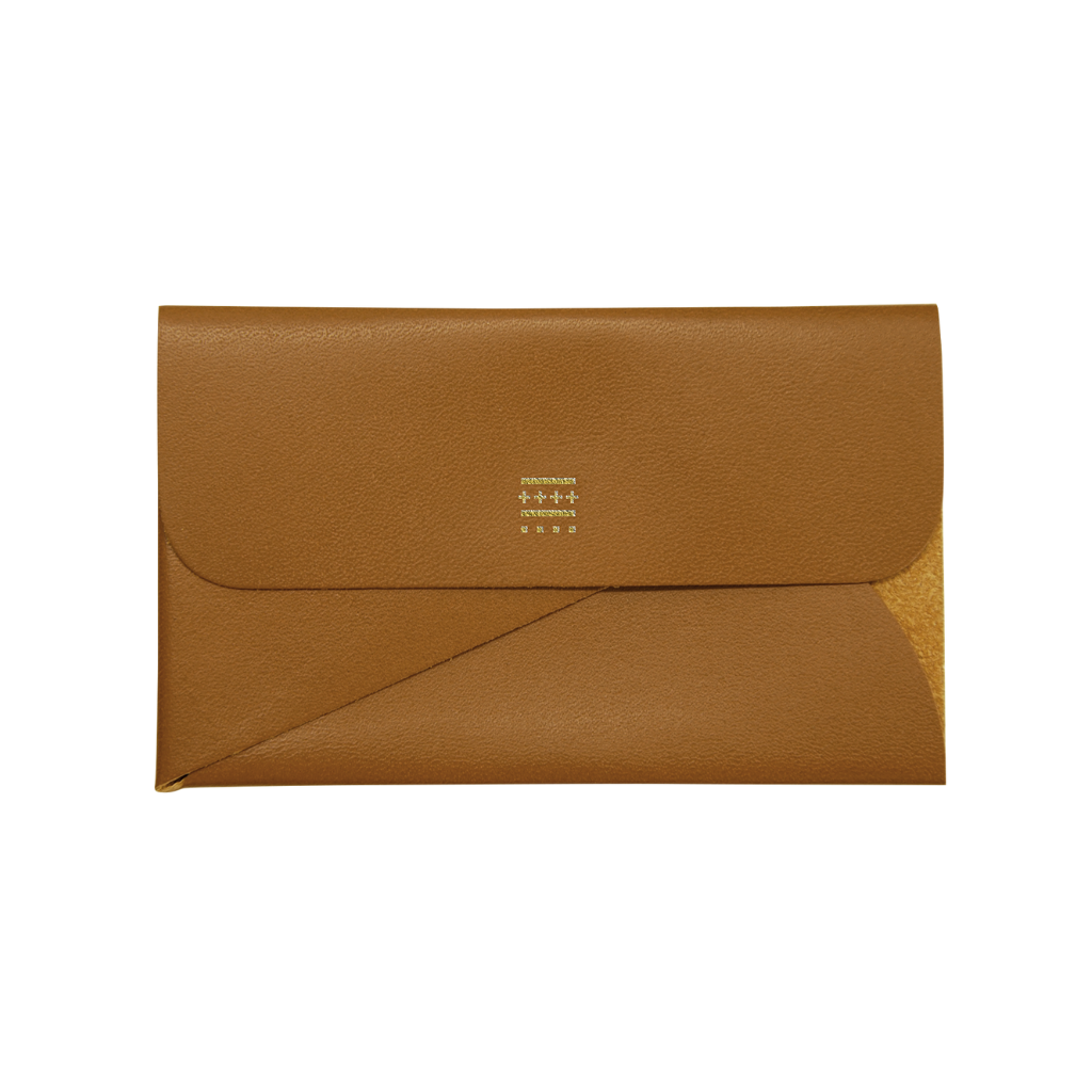 姫路のタンナー、国内の漉割職人の手を経て生まれる紙のように薄い革。そのままだと柔らかくて整形できない革を、特殊な裏処理加工を施すことで、パリッと張りのある dünn レザーが誕生します。折加工のみというシンプルな構造により、dünnレザーの強みである薄さをさらに味わっていただけます。