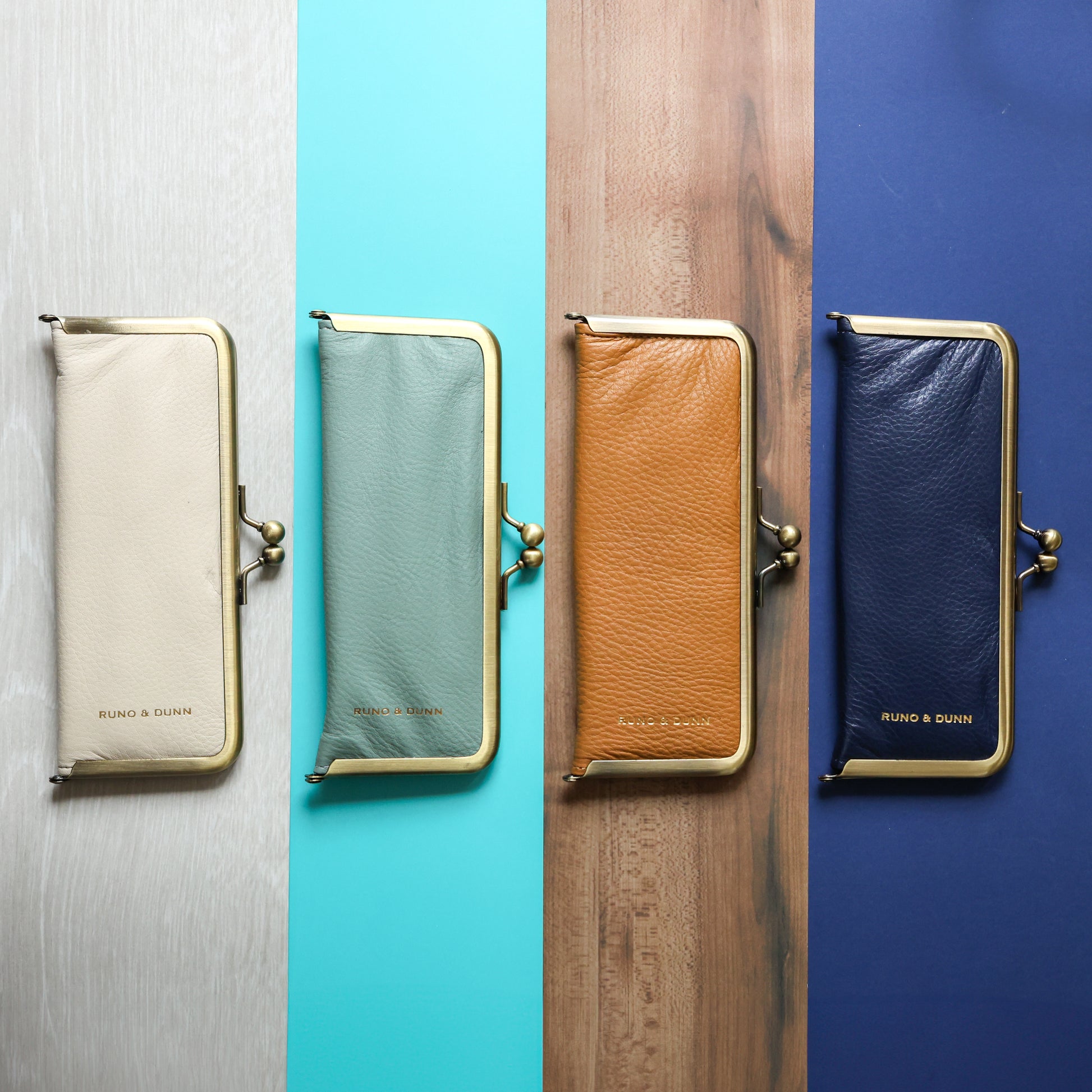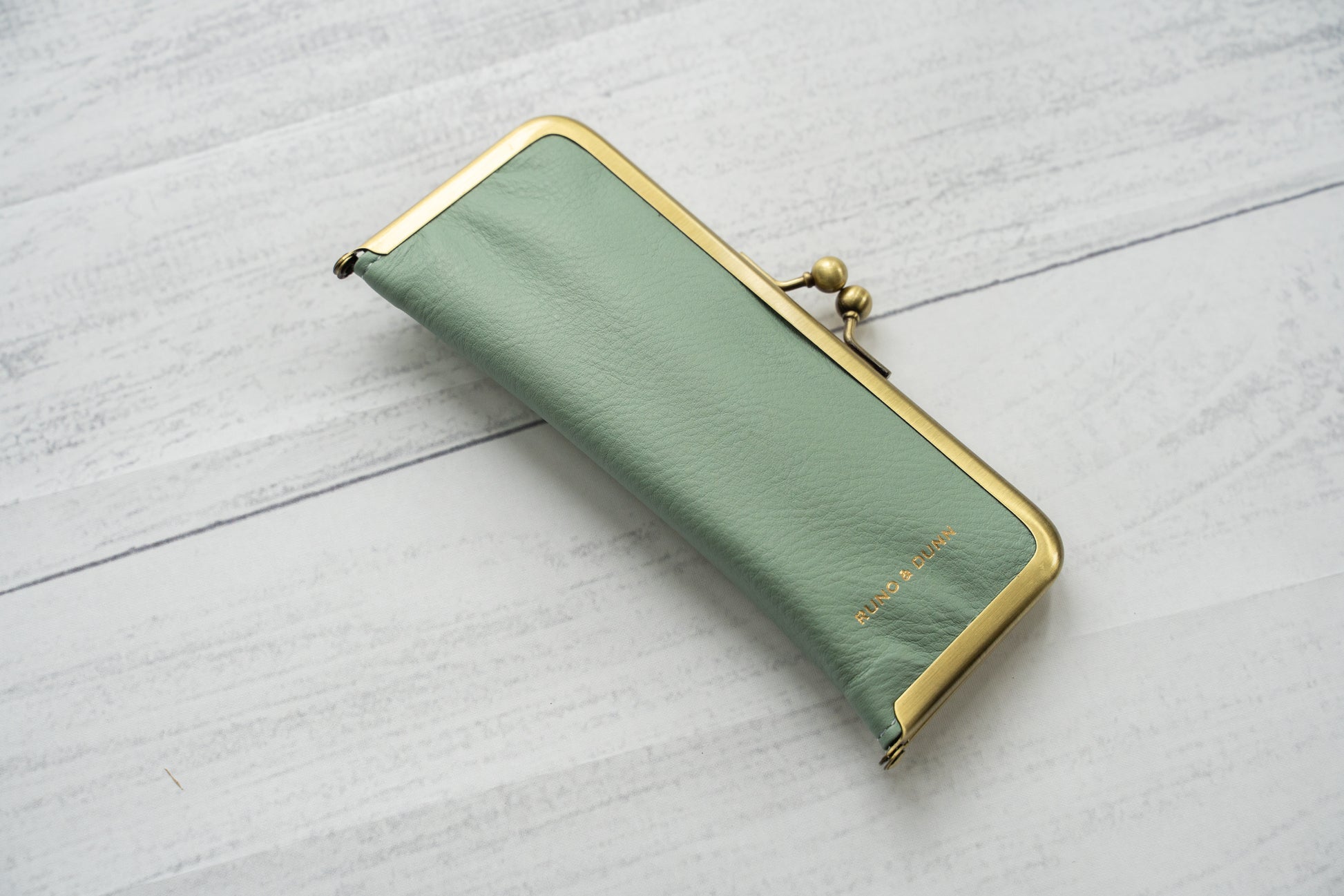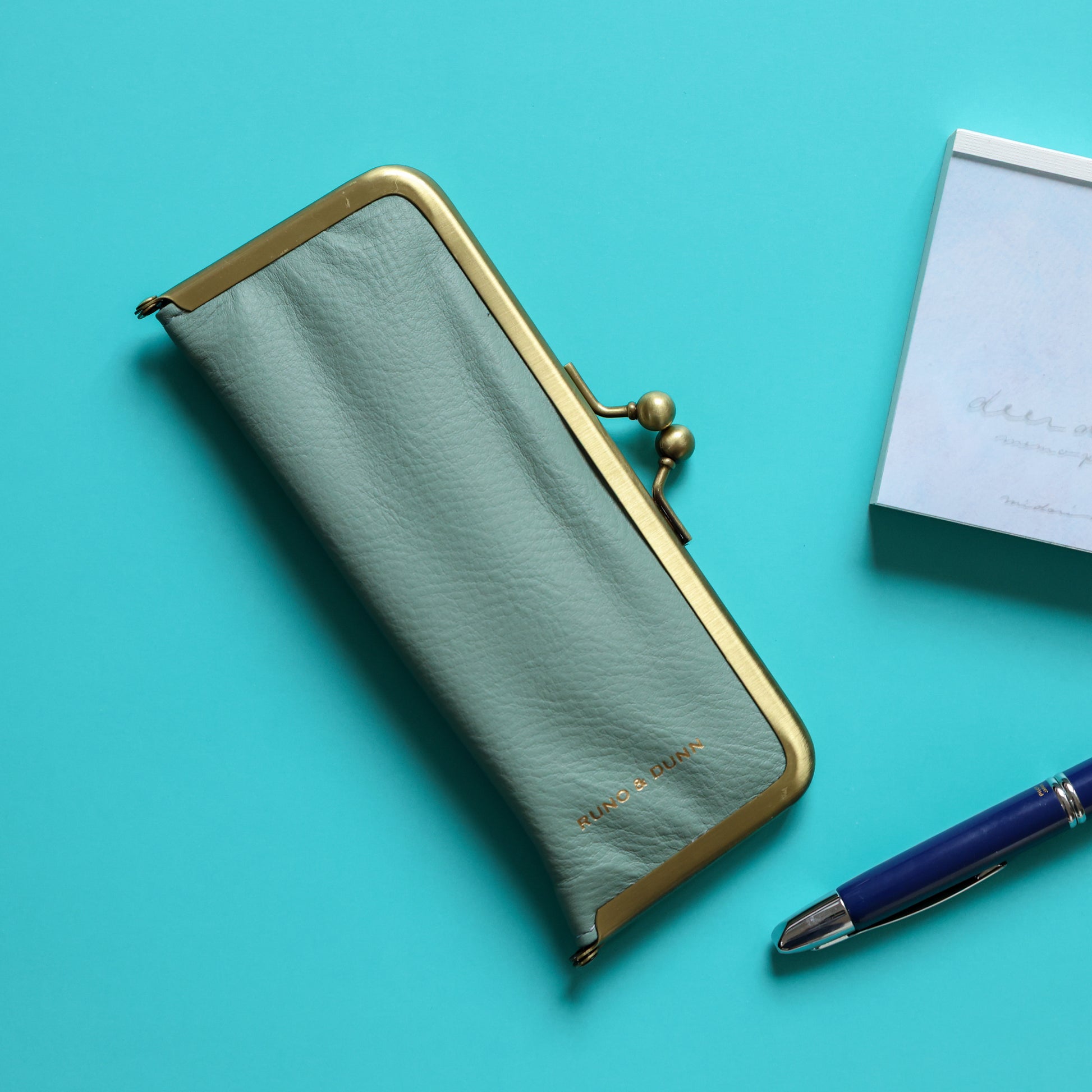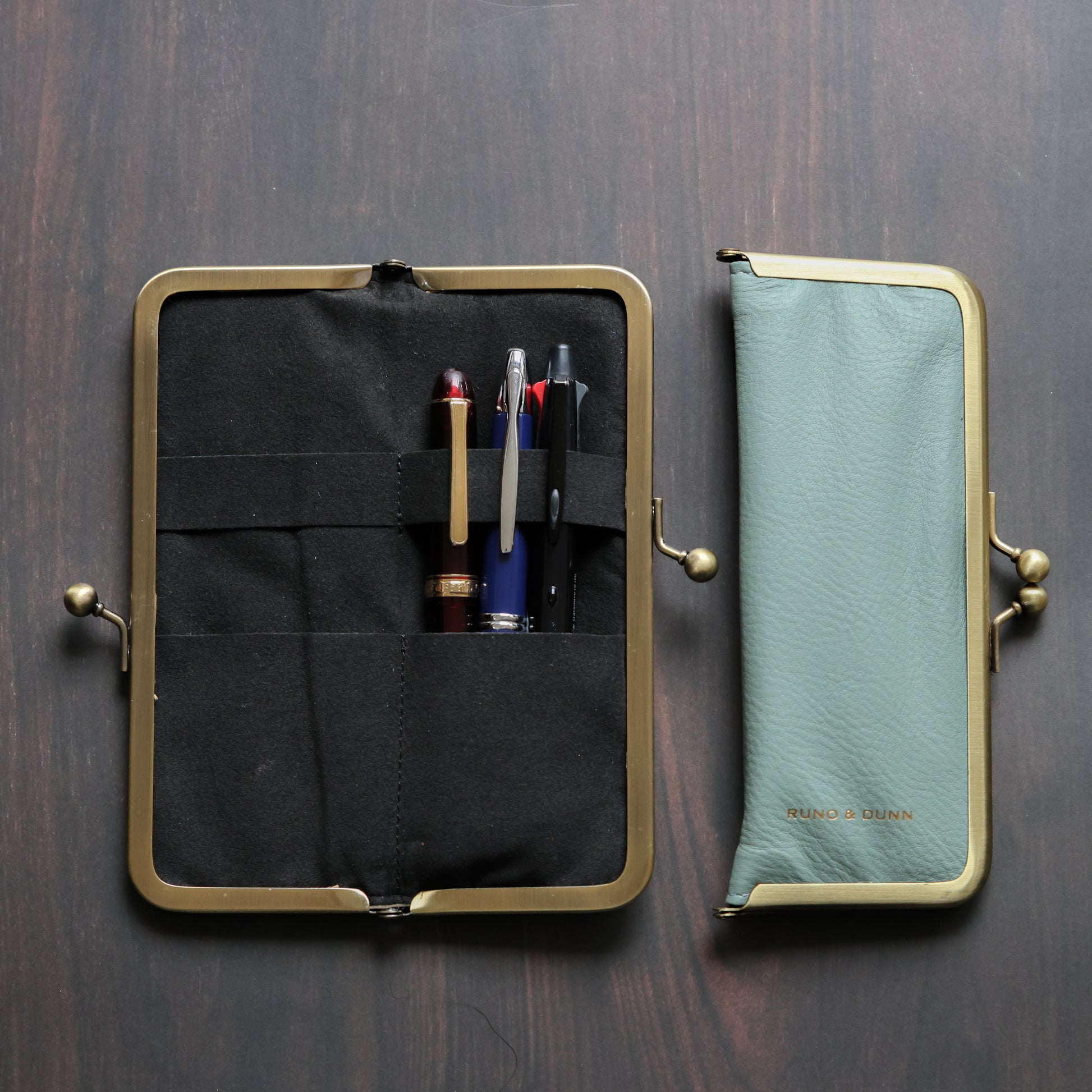 dünnとがま口ペンケース"るぅの"のコラボペンケースが新登場。がま口のかわいさと、革の高級感が絶妙なバランスで、大人のペンケースの装いを演出しています。外側はdünn glasspen boxでも使用したシボありの風合いの良い姫路レザー、ペンが入る内部は保管性の高い素材エクセーヌを使用し、ペンにも優しい仕様となっています。ペンだけではなく便箋や定規なども収納することが可能です。