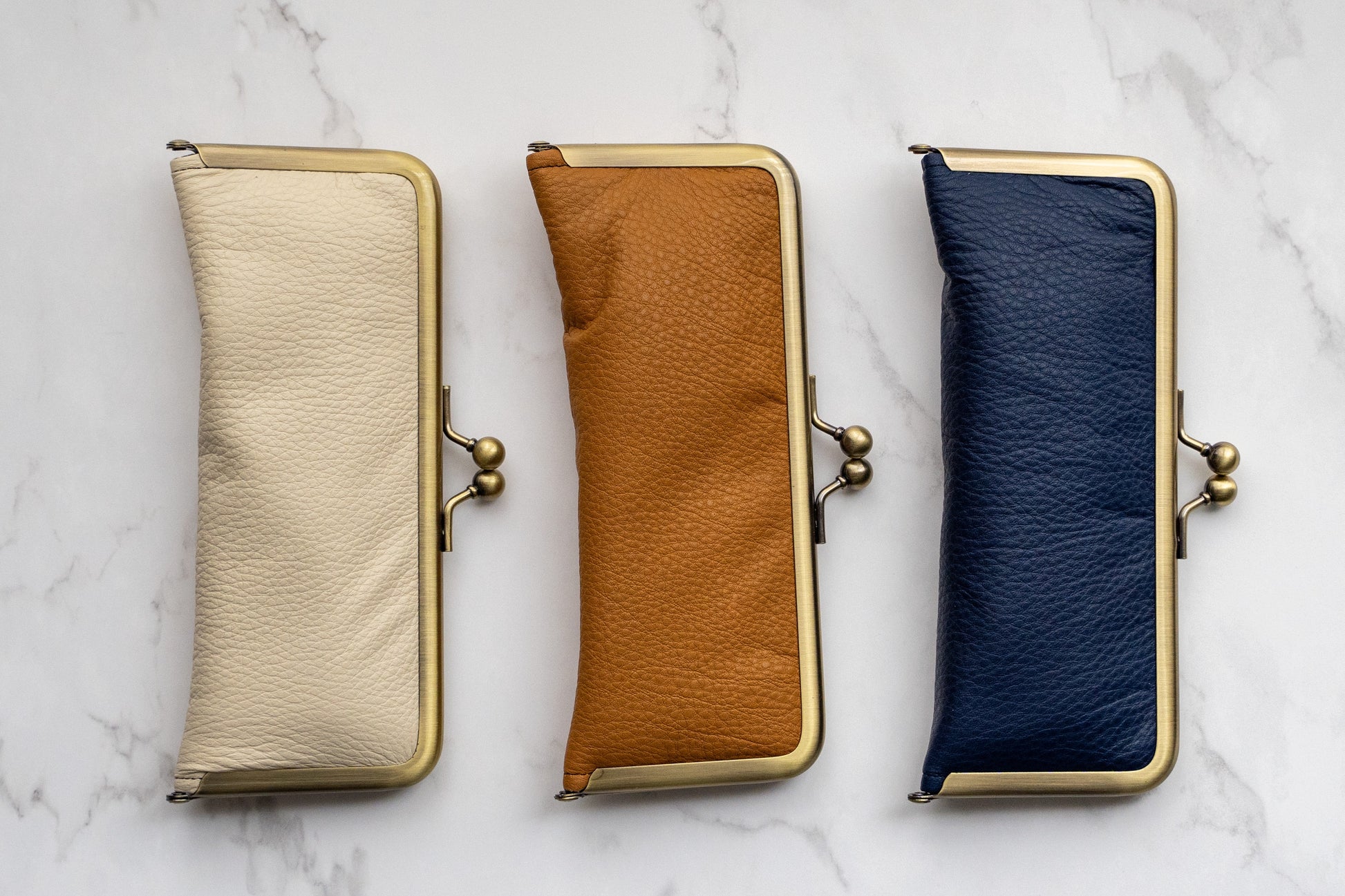 大切な筆記具を丁寧に持ち運ぶ。がま口のかわいさと、革の高級感が絶妙なバランスで、大人のペンケースの装いを演出しています。シボありの風合いの良い姫路レザーにより、洗練された雰囲気と実用性を兼ね備えています。